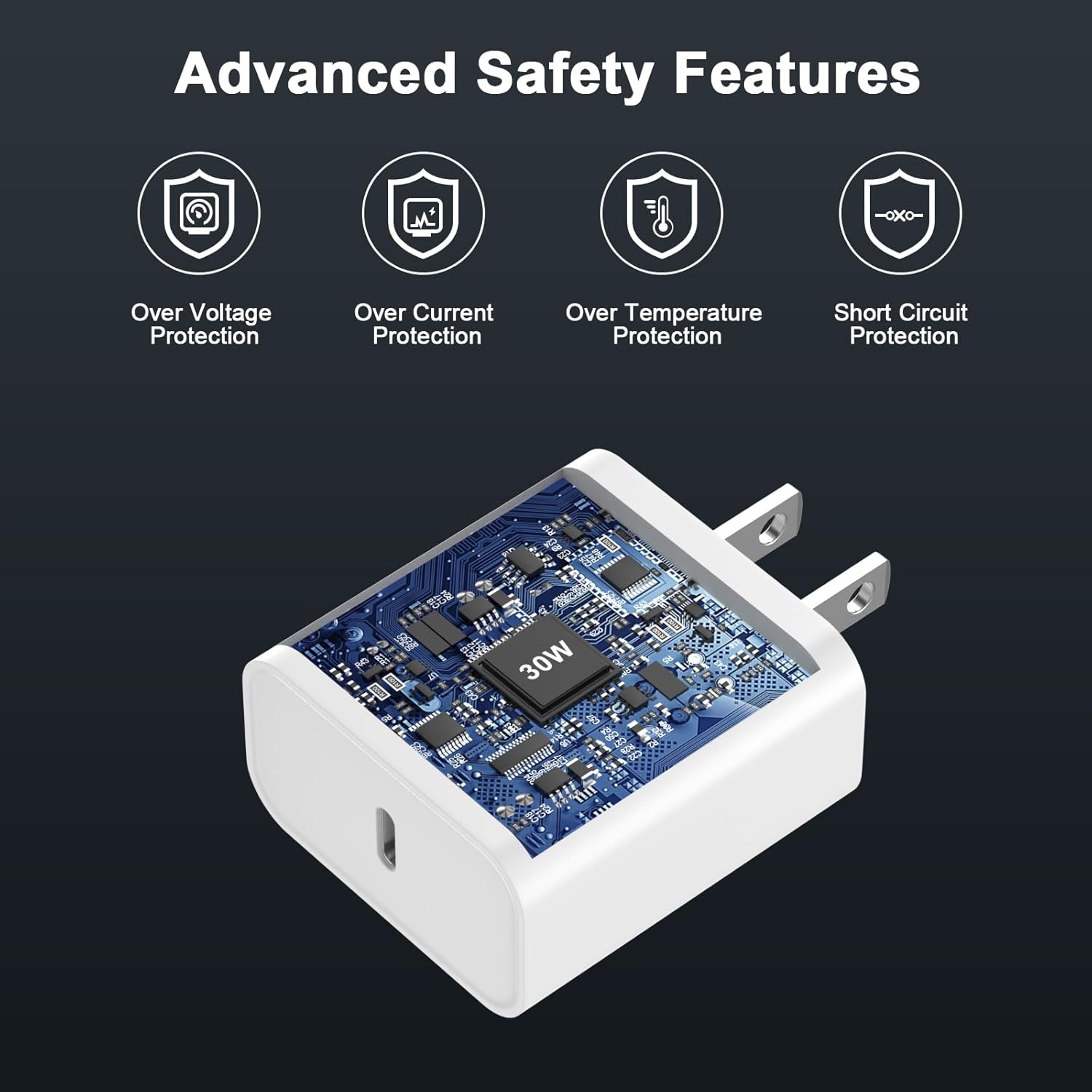 【Universal Compatibility】 This 30W iPhone 17 Pro Max chargers with 6ft extra long usb c to c charger cable cord are perfectly compatible with iPhone 17/Air/17 Pro/17 Pro Max/16/16 Plus/16 Pro/16 Pro Max/15/15 Plus/15 Pro/15 Pro Max, New 2021 iPad Mini 6th, iPad Pro 12.9 in 5th/4th/3rd, iPad Pro 11 in 3rd/2nd/1st, iPad Air 4th, Galaxy S25/S25+/S25 Ultra/S24/S24+/S24 Ultra/S23/S23+/S23 Ultra/S22/S21/S20/Note 20/Note 10, Pixel 9/8/7/6/5/4/3/2 XL, and more usb c devices.