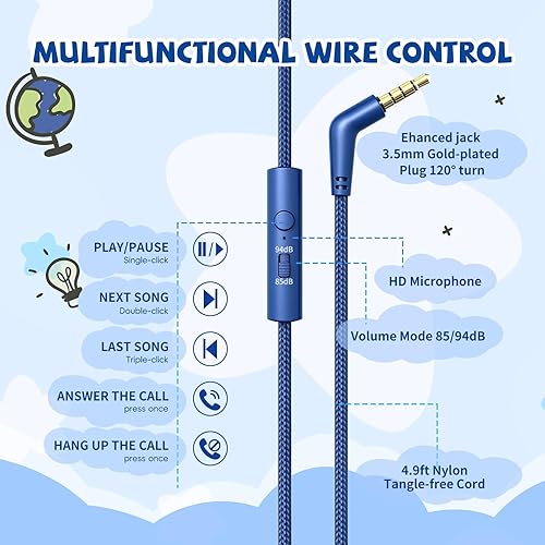 【Great Durability】The boys headphones are designed with a 4.9ft tangle-free & tear-resistant nylon cord and robust & kid-friendly materials, toddler headphones are built to withstand any twisting, pulling and tough treatments of kids, long-lasting for everyday use