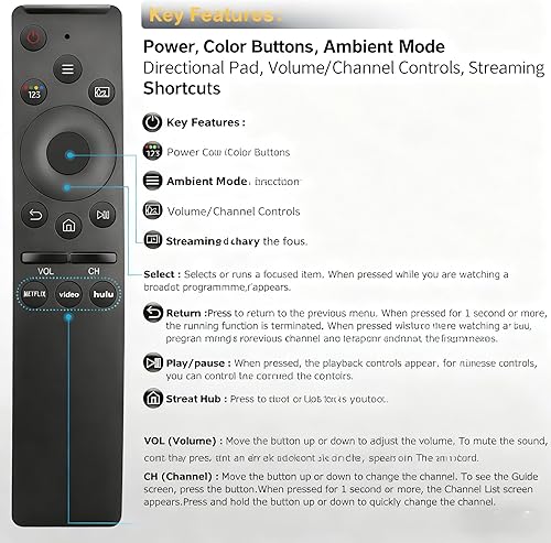 【Quick-Access Streaming Buttons】Enjoy one-tap access to Netflix, Video, and Hulu—no more digging through menus. (Note: This is an infrared (IR) remote and does not support voice control.)