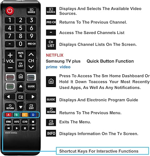 Works with all Samsung Smart TVs (LED, LCD, HDTV, 3D, and more). Features one-touch shortcuts for Netflix, Prime Video, and Hulu for instant streaming
