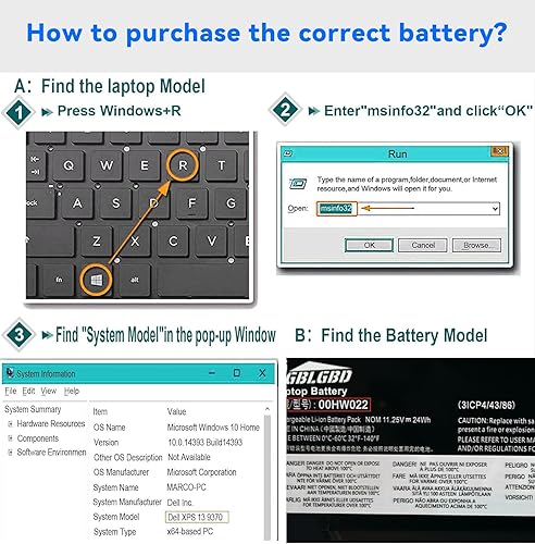 Tips Before Buy: Before purchasing, please open the back cover of the laptop to confirm the battery model. Press [CTRL + F] to search for your laptop model/part number. Compatible laptop models and part numbers of compatible batteries and laptops are listed as following in product details.