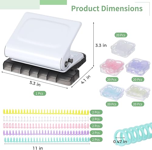 Comprehensive Set: Includes a 10-hole binder machine, 10 binding spines (5 colors), and 100 binder rings (5 colors), ideal for all your binding needs; the machine can punch 10 holes at once and punch through up to 10 sheets simultaneously