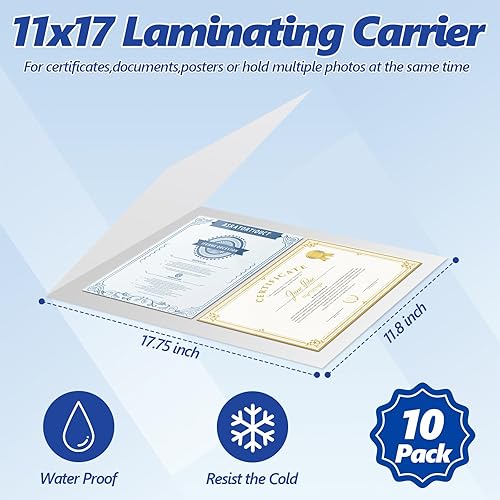Comment on "10 Pack 11.8 x 17.75 Inch Laminator Carrier Sleeve Tabloid Size Thermal Laminating Carriers Sheets Protection Thermal for All Brand Laminating Pouches Certificates Documents Posters Photos Cards(Tabloid Size,10)"