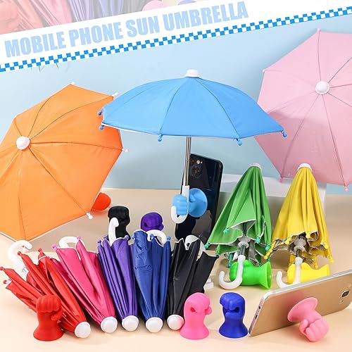 Complete Set: this package includes 10 mini umbrellas for phone and 10 fist-shaped suction cup stands, each in different bright colors; Perfect for personal use or sharing with friends and family, ensuring your phone stays shaded wherever you go