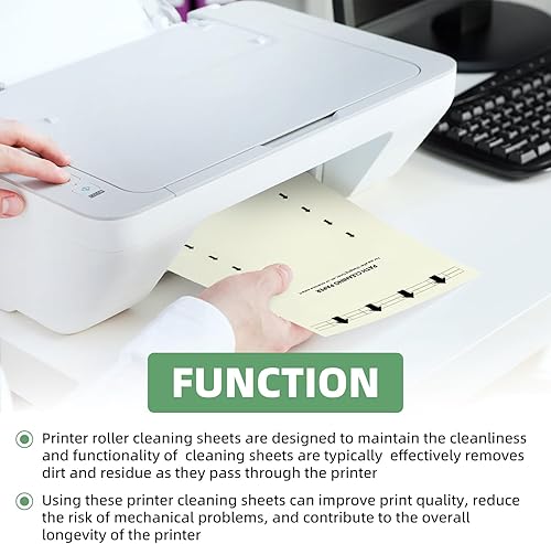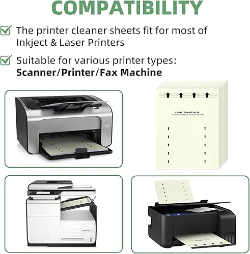 Premium Quality : Made from thick, durable paper, these sheets are built to last and reusable. Cleaning Sheets for scanner and copier maintenance. The cleaning sheets effectively clean the printhead and remove dust, smudges, or residue from the printer’s internal components.