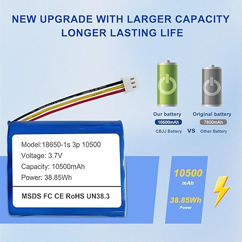 [Larger Capacity] This lithium-ion security system keypad battery with a higer capacity of 10500mAh and has a high power of 38.85Wh. It has a larger capacity and stronger energy than other batteries on the market with a capacity of less than 8000mAh, is an ideal replacement for the original battery of the device.