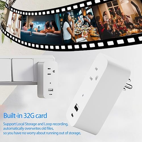 1080P Power Strip Mini Camera Wireless WiFi Connection App View Pictures Taking Plug Cam for Indoor Security Built-in 32GB SD Card Wall Outlet (No Audio)