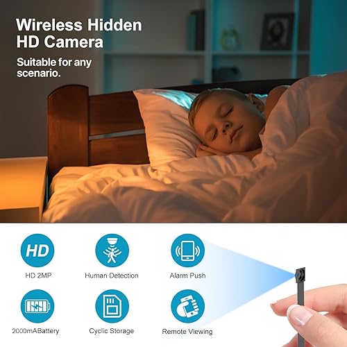 1080P WiFi Secret Scope Camera Espia, Mini Spy Camera Wireless Easy to Hide, or Home Security, with Motion Detection Function, Support SD Card & Battery Power Work with APP(A)