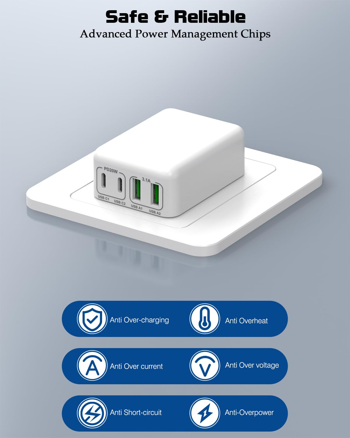 40W Ultra-Fast iPhone Charging: The Type C fast charger delivers blazing-fast speeds with 2 USB-A ports and 2 USB-C PD ports, iPhone fast charging, Android charger needs, and powering tablets/laptops. The USB-C charger block quick refuels for multiple devices simultaneously, cutting charging time in half compared to standard adapters
