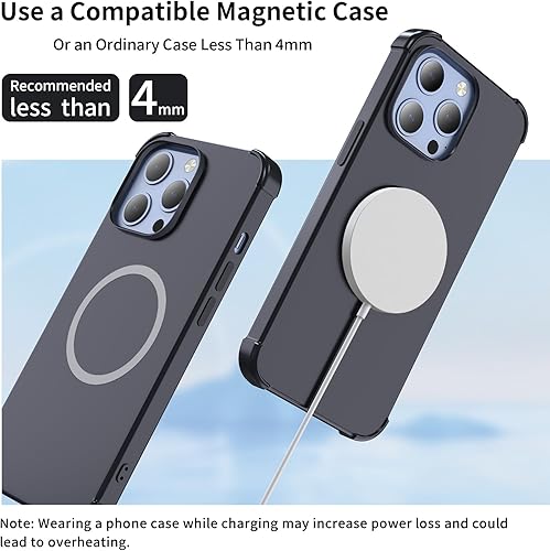 【for iPhone 17/16/15/14/13/12】This magnetic wireless charger is designed for iPhone 17/Air/17 Pro/16/16 Plus/16 Pro/16 Pro Max/15/15 Plus/15 Pro/15 Pro Max/14/14 Plus/14 Pro/14 Pro Max/13/13 Mini/13 Pro/13 Pro Max/12/12 Mini/12 Pro/12 Pro Max. Also compatible with other Qi-enabled phones equipped with a magnetic case.