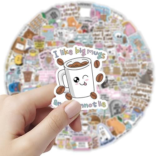 Comment on "110Pcs Funny Coffee Stickers, Waterproof Vinyl Stickers for Water Bottles, Laptops, Journals, Coffee Quote Lovers Decals for Scrapbooking, Party Favors, Gifts(Coffee)"