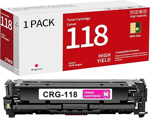 Comment on "118 CRG118 High Yield Toner Cartridge Replacement for Canon 118 CRG-118 Compatible with Canon ImageCLASS MF727CDW MF722Cw LBP7200C LBP7200Cdn LBP7210Cdn Printer (Magenta , 1 Pack)(118-1PK(1Black))"