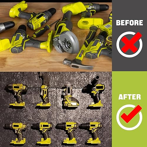 SPACE-SAVING DESIGN – 12-pack includes 6 tool mounts + 6 battery mounts (with Screws)for full organization. Mount vertically/horizontally on walls, pegboards, or toolboxes.