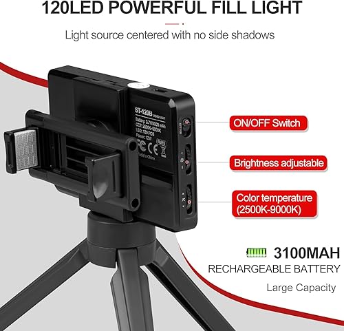 Adjustable Tattoo Light Kit: This 120LED tattoo lighting lamp has 3 lighting modes (White, Warm Yellow and Neutral Light), stepless dimmable, 5%-100% brightness adjustable, colour temperature range from 2500K-9000K,which could satisfy different tattoo photography needs. The led phone light is rechargeable with usb-c charging port, 100% brightness last for 3.5hours.