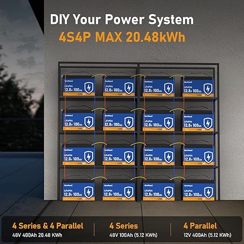 Maximum Expandable Capacity Up to 20.48 KWh: 12V 100Ah LiFePO4 batteries can be connected in parallel or series to achieve greater capacity. They can be configured as 4 series (48V, 100Ah, 5.12 KWh) or 4 parallel (12V, 400Ah, 5.12 KWh), or 4 in series and 4 in parallel (48V, 400Ah, 20.48 KWh), suitable for RVs, solar systems, off-grid applications, yachts, marine vessels, trucks, RVs, home backup power, etc. You can adjust the configuration according to your needs