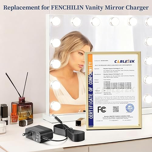 Package Included: 1 x Replacement for FENCHILIN makeup mirror Charger. Our chargers meet OEM manufacturing standards and undergo multiple tests to ensure they are suitable for Hollywood vanity mirror