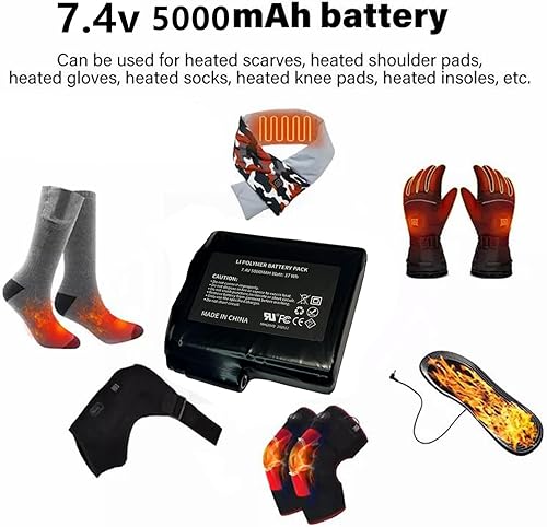 12V 5600mAh Heated Jacket Battery Li-Polymer,12V Heated Vest Batteries Pack for 12v Heated Blanket,Rechargeable Battery for Heated Apparel(7.4v 5000mAh)