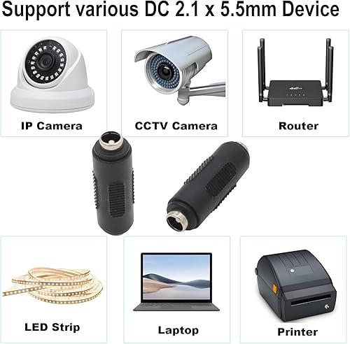 It's perfect for extending 2.1mm x 5.5mm DC power cables in CCTV systems, LED strips, and other device with dc male end.