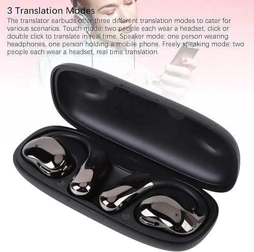 3 Translation Modes: The translator earbuds offer three different translation modes to cater for various scenarios. Touch mode: two people each wear a headset, click or double click to translate in real time. Speaker mode: one person wearing headphones, one person holding a mobile phone. Freely speaking mode: two people each wear a headset, real time translation.
