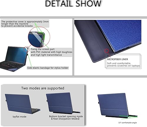 Material: PU leather [like linen texture] surface feel comfortable, non-slip, wear-resistant, scratch-resistant, lined with microfiber, can prevent accidental scratching of laptop.