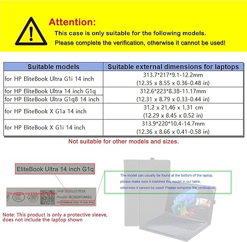 Fit Models: Case only for HP EliteBook Ultra G1i /G1q /G1q8 & for HP EliteBook X G1a /G1i 14 inch laptop,not suitable for other models, please do check.