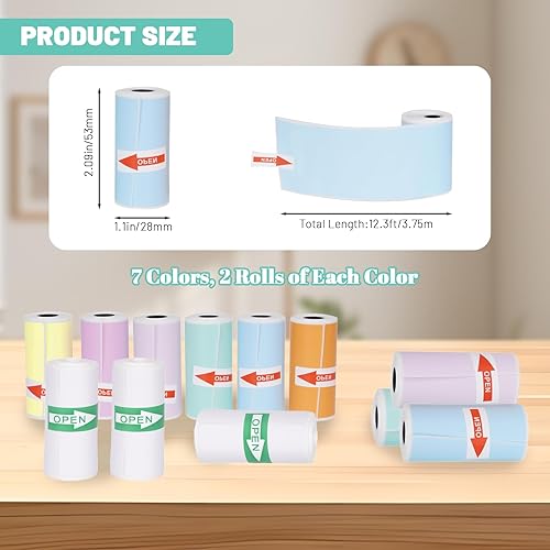 [GREAT VALUE]Package includes 14 rolls of sticker paper for printer in 7 colors(2 rolls of each color), each roll of the thermal printer paper is about 2.2 inches x 10 feet, and can print about 50-60 photos.These thermal paper rolls will be your perfect companion for travel and on-the-go moments.
