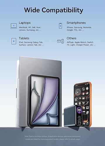 Ultra-Portable 140W Charger: Designed as a lightweight travel charger for multiple devices, this GaN charger is compact and foldable plug, making it easy to pack. It's the perfect travel charger companion for trips— fast charging laptops, tablets, and phones on the go without bulk.