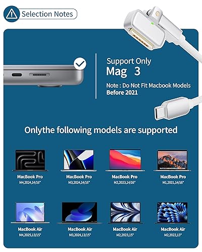 Perfect compatibility with multiple models: precisely compatible with MacBook Air (M2/M3/M4, 2022-2025, 13‘/15’), MacBook Pro (M1/M2/M3/M4, 2021-2024, 14‘/16’). Magnetic connector for instant connection, no need to repeatedly plug and unplug, dust-proof and corrosion-resistant, making it the ideal companion for business travel and mobile office use.