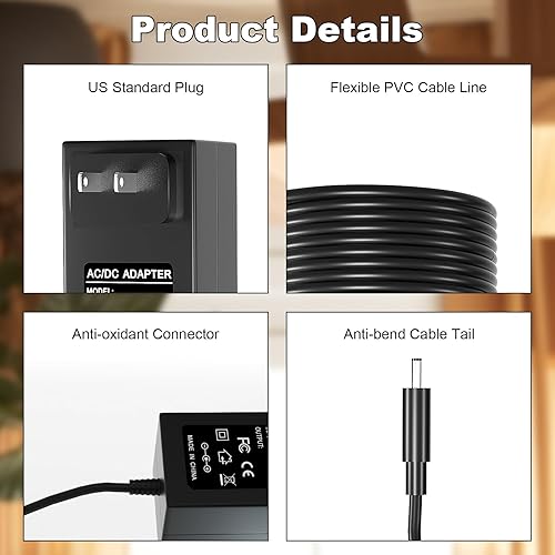 【Product Information】Input Voltage AC100-240V; Output voltage: DC15V ; Fireproof PC Shell (more secure)+ Pure Copper Core (Longer Service Life) Charger cable length: 5FT