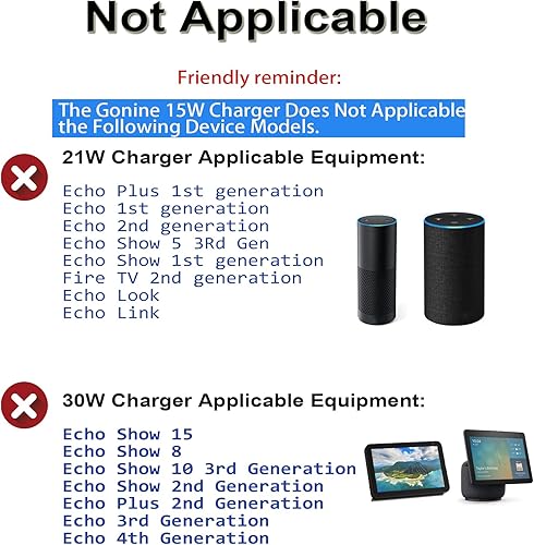 Compatible with: 15W Charger Power Cord fit for Alexa Echo Dot 3rd Gen, Echo Dot 4th Gen, Echo Dot 5th Gen, Echo Show 5 (1st 2nd Gen), Echo Dot With Clock, Echo Spot, Fire TV Cube, Echo Dot 3rd 4th 5th Gen Kids Edition, Echo Pop.