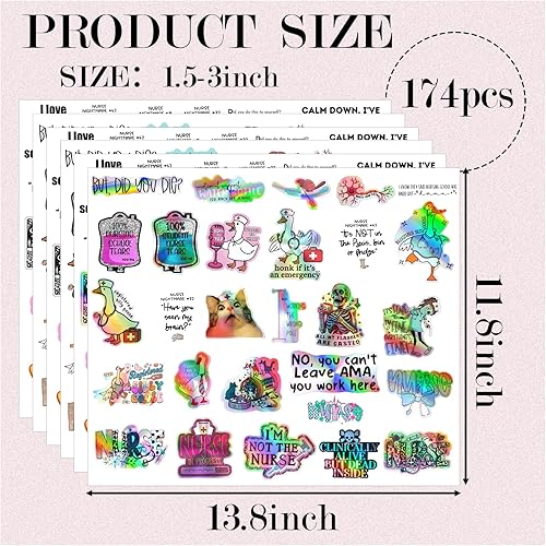 Comment on "174 Pcs Funny Nurse Stickers, Holographic Cool Medical Nurses or Nursing Week Gift Stickers for Water Bottles, Laptop, Computer, Student, Adults, Assistant(nurse174)(nurse174)"