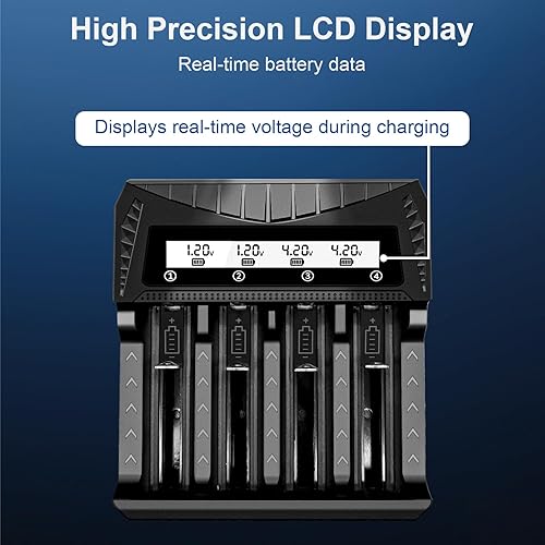 LCD DISPLAY: Each slot can independently track the voltage level, charging progress and provide instant information through the high-resolution screen, allowing you to have a clearer understanding of the current battery level.