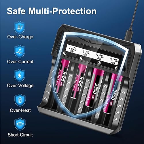 18650 Battery Charger 4 Slot, USB High-Speed Charging with LCD Display for Rechargeable Batteries AA AAA 18650 26650 14500 16340 18500 21700 18500, Li-ion Batteries.etc(LCD-4 slot)