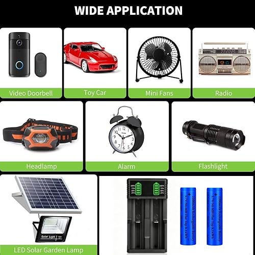 【MULTI USE & 1000+ CYCLES for 3.7V Battery】 - 3.7V 2200mAh batteries Ni-MH can be recharged over 1000 times, and compatible with LED flashlights, emergency lights, portable devices, headlamps, toys, remote controls, doorbells solar lights, racing, game controller, mini fan and other electronic devices.