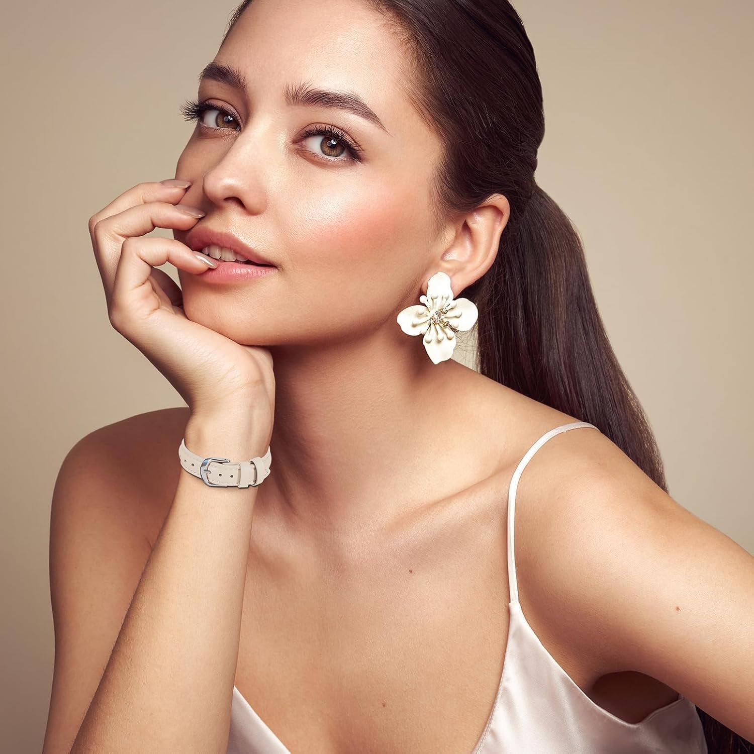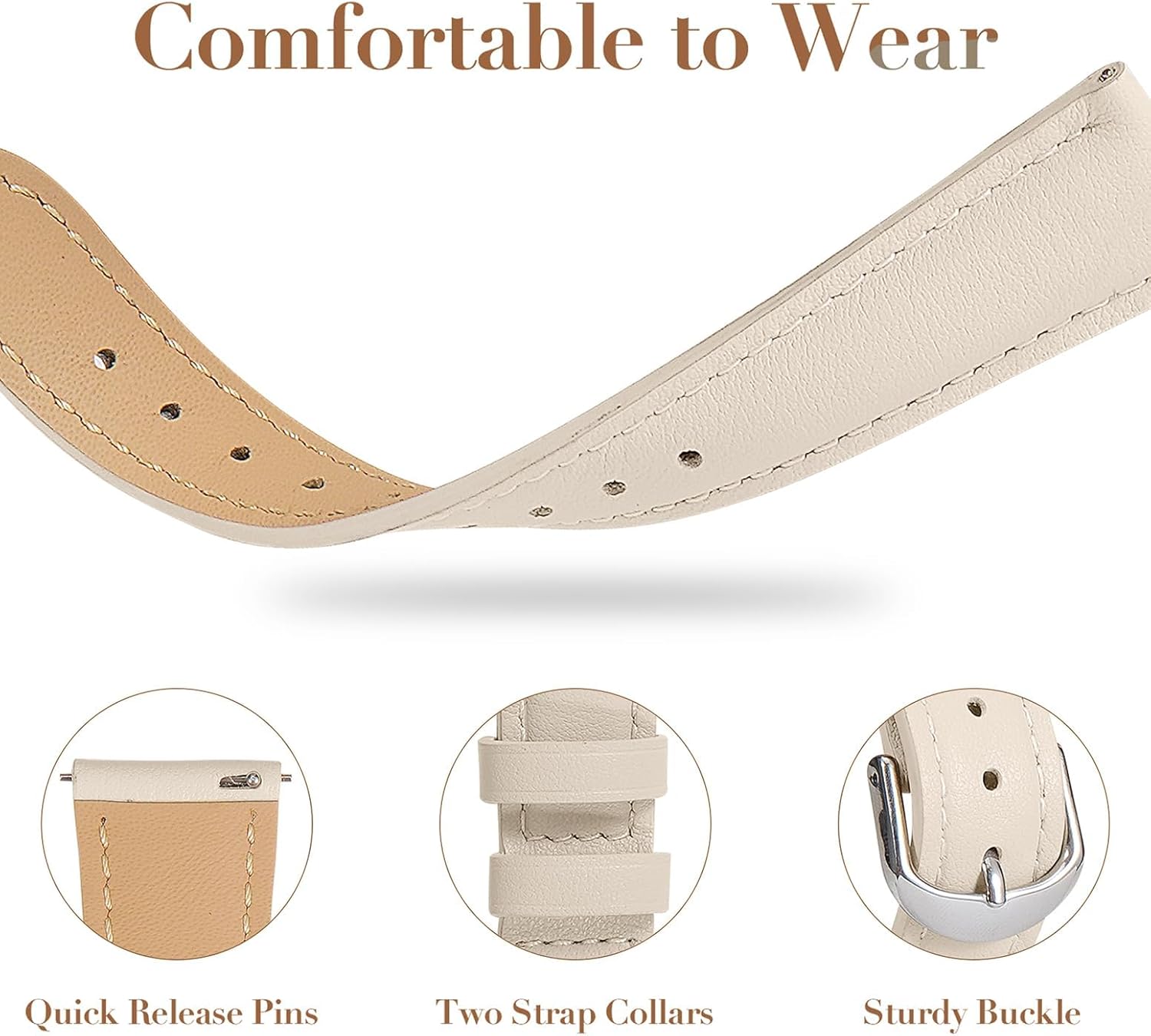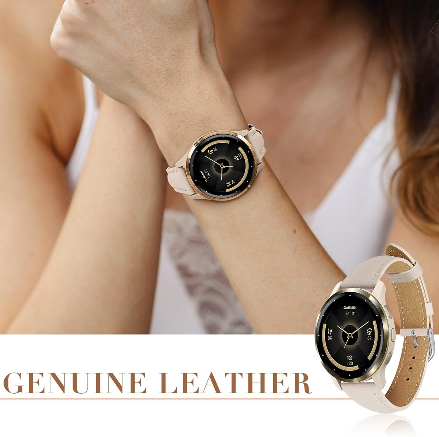 18mm Slim Leather Band Compatible with Garmin Venu 3S 41mm/Venu 4 41mm/Venu 2S/Vivoactive 4S/Vivomove 3S/Forerunner 255S/Forerunner 265S, Quick Release Thin Narrow Soft Strap for Women Men(Starlight)