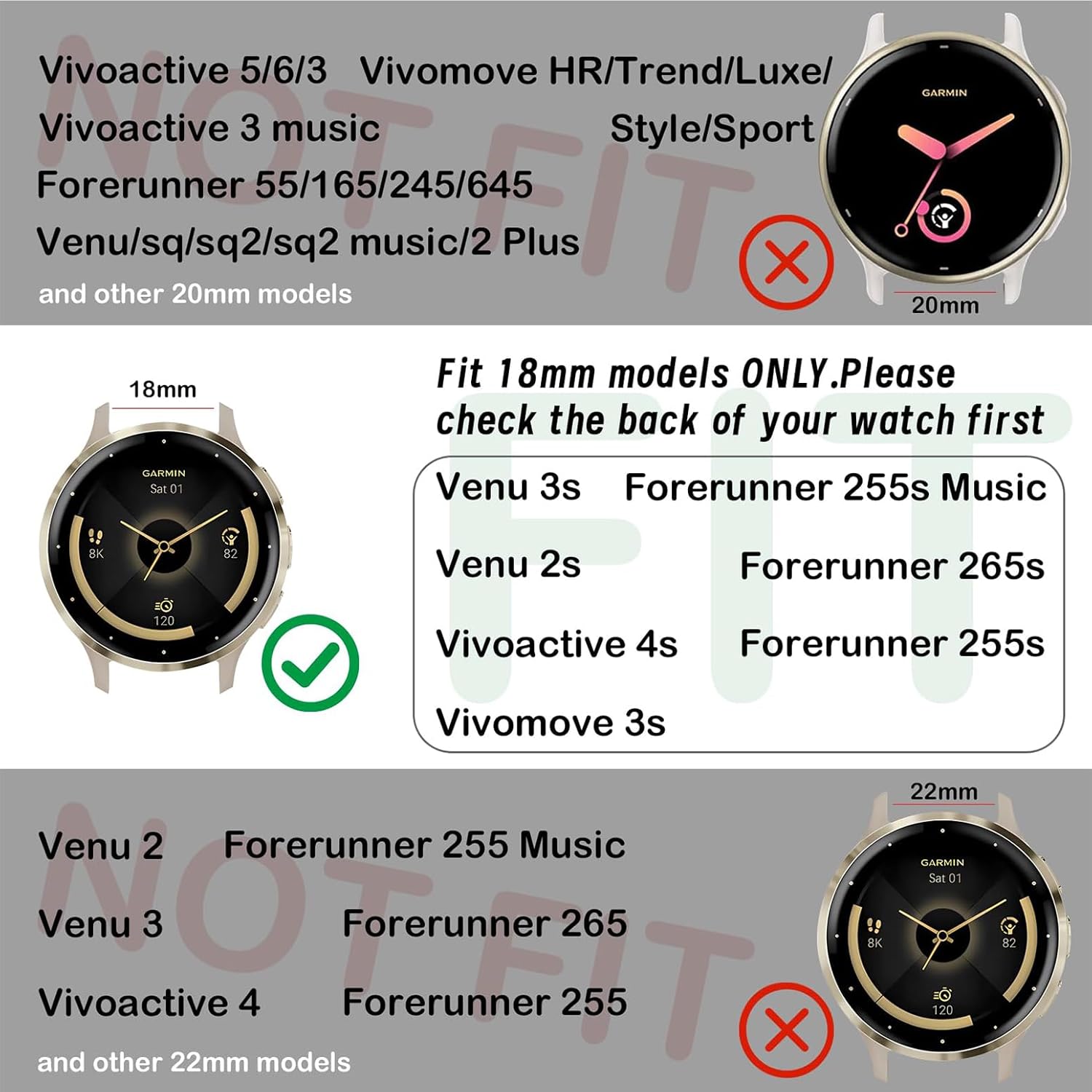 【18mm Slim Leather Watch Band】Compatible with Garmin Venu 2S 40mm/Garmin Venu 3S 41mm/Garmin Venu 4 41mm/Garmin Vivoactive 4S 40mm/Garmin Vivomove 3S 39mm/Garmin Forerunner 255S 41mm/Forerunner 255S Music/Forerunner 265S 42mm. Also fit for any watches with 18mm lugs. NOTE: Please check your watch model before purchase.