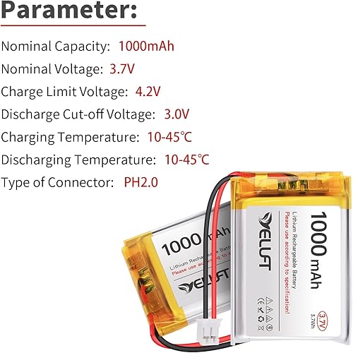 Widely Application: Equipped with PH2.0 plug, these 1000mAh battery can be used for MP3, MP4, wireless headset, GPS tracker, baby monitor, game console, smart watch, surveillance device, POS, car recorder, speaker, VR glasses, beauty device, pet tracker, visual doorbell, etc