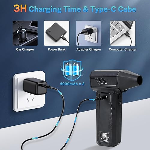 【Compact & Portable】 True pocket mini air blower. The size of this mini turbofan is (7.8*5.6*2.1in). Small size and light weight (only 0.88 pounds). Easy to carry and store. You can easily store it in a toolbox, tote bag or even pocket without taking up too much space. Easy to use anytime, anywhere.