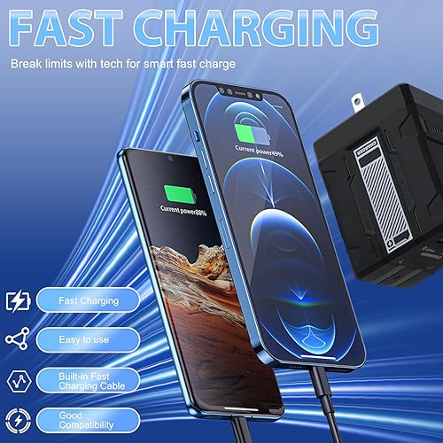 【2-in-1 Fast Charger】 Features two built-in cables (31.5" reach) that retract neatly. Reduces clutter for organized charging at home, work, or while traveling.