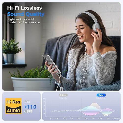 【Premium Hi-Res Hi-Fi Sound Quality】 Designed for music enthusiasts, our Lightning & Type-C to 3.5mm adapter built-in smart DAC decoding chip, delivering Hi-Fi audio at 32Bit/384KHz. Aux adapt ensures stable and high-quality sound transmission, allowing you to enjoy your favorite music with high fidelity and no current noise. The 2 in 1 headphone adapter is a perfect choice for music fans!