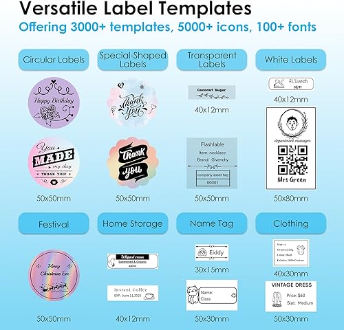Easy-to-use App & DIY Labels: KNAON Thermal Shipping Label Printer offers a vast selection of pre-designed templates, including 3,000+ templates, 5,000+ icons, and 100+ fonts available in the app. Designed for both professional and personal use, it supports various thermal paper sizes, ensuring effortless customization for all your labeling needs. Ideal for printing DIY barcode labels, thank-you labels, name tags, price tags, and various small thermal labels.