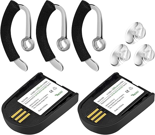 Included Accessories: The package includes not only the replacement battery but also a 3-pack of earhooks and spare earbuds with foam tube kits in small, medium, and large sizes. This provides a complete solution for repairing and upgrading your headsets.