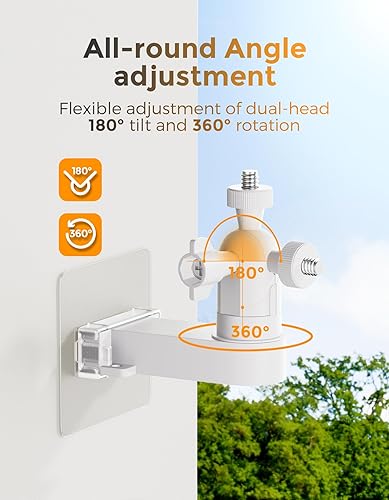 【Quick & Hassle-Free Installation】 Get a custom, rock-solid setup in minutes. Choose your method: use the included screws for a permanent hold on wood, brick, or stucco, or go completely drill-free with the heavy-duty adhesive pad (perfect for renters on tile, metal, or glass). Your camera stays locked in place with minimal effort