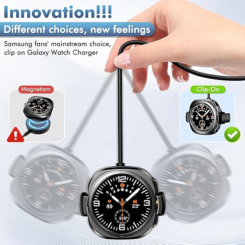 Upgrade: This Galaxy watch charger features a unique clip on structure, providing a safe charging compartment for Samsung watches without worrying about the watch slipping out(6FT)
