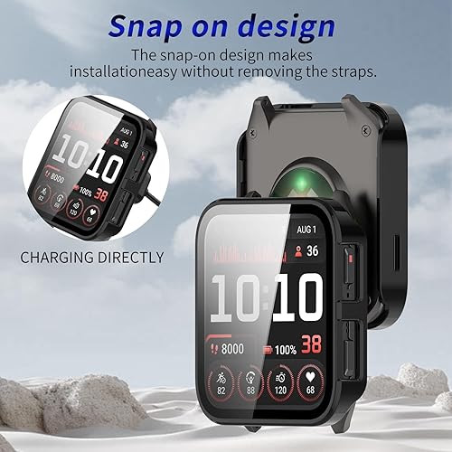 【Easy to Install】 1. Clean screen first. 2. Peel sticker, install from crown side (don't press protector). 3. Press frame to secure. Snap-on design: easy install without removing straps. Ensure secure fit for better protection!