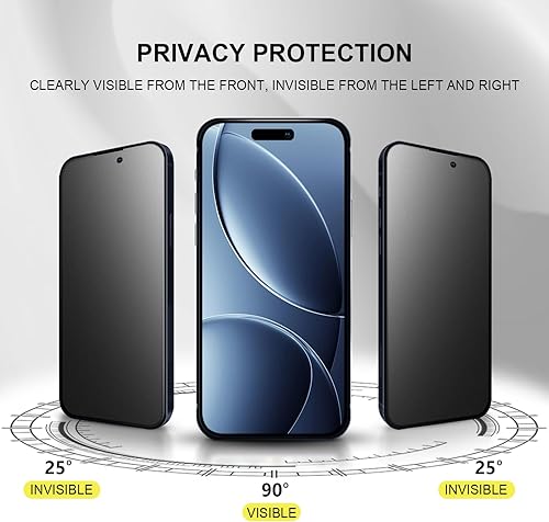 Anti-Peeping Privacy Protection: Advanced 25°privacy technology is adopted with a smaller viewing angle but higher clarity than most privacy screen protector on the market. To protect privacy, the screen is only visible to users in front instead of bystanders. (Note: the anti-peeping effect is only functional for left and right angles instead of vertical ones, and it is recommended to increase the brightness of iPhone 16 pro screen when in use.)