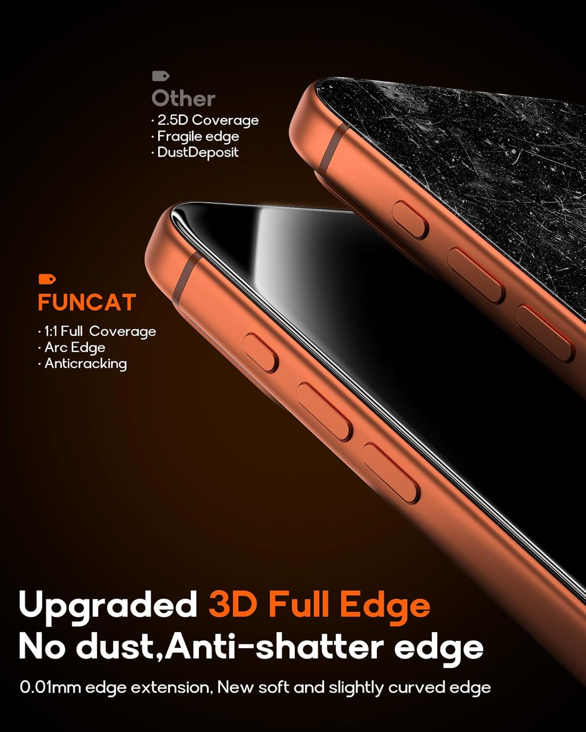 [Fingerprint-proof] FUNCAT GLOBAL tempered glass screen protector uses hydrophobic Electroplated Layer. Against oil residue and fingerprints from daily use.