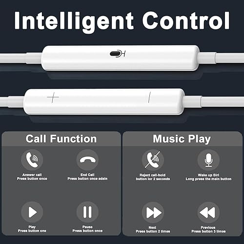 Easy to Control:The headset for iPhone built-in controller with high-quality hands-free microphone. The music and volume controller is designed to play/pause music, volume up/down, next and previous track, answer/end calls Wake up Siri. No need to take the phone out of your bags or pocket during these operations, free your hands.
