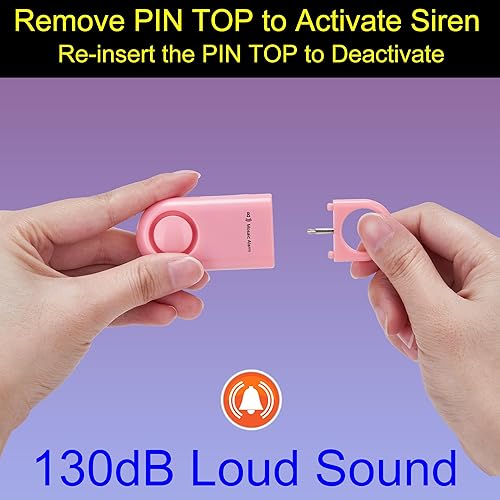 【Easy Remove PIN Top to Activate Siren】 It will emits a very high-pitched, 130db loud piercing sound and last 30 minutes until the batteries died. Re-insert the PIN can stop the siren. TIPS: The PIN is deliberately a little tight so as to avoid false alarms.