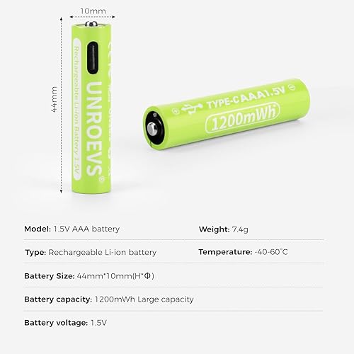 【AAA Batteries: 1200 mWh Long-Lasting Power】: UNROEVS USB Rechargeable AAA batteries lasts 2X longer than other aaa rechargeable batteries, in a flashlight/headlamp they work great, and don't worry about running out of power while you're working